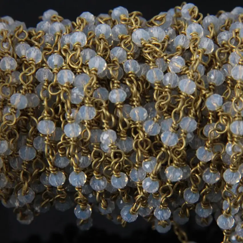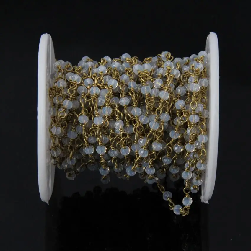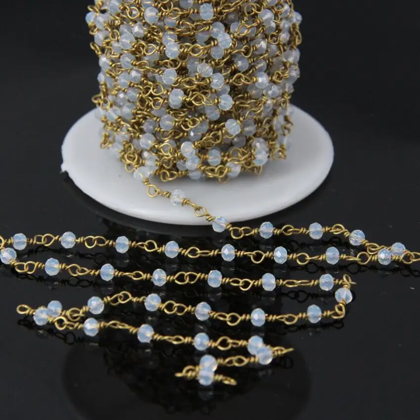 BEST 5MeterWhite Opal Gems Rosary ChainFaceted Rondelle Beads Brass Wire Wrapped ChainFashion Women Neck