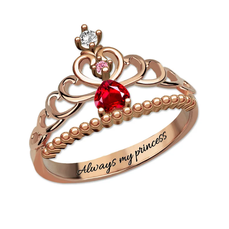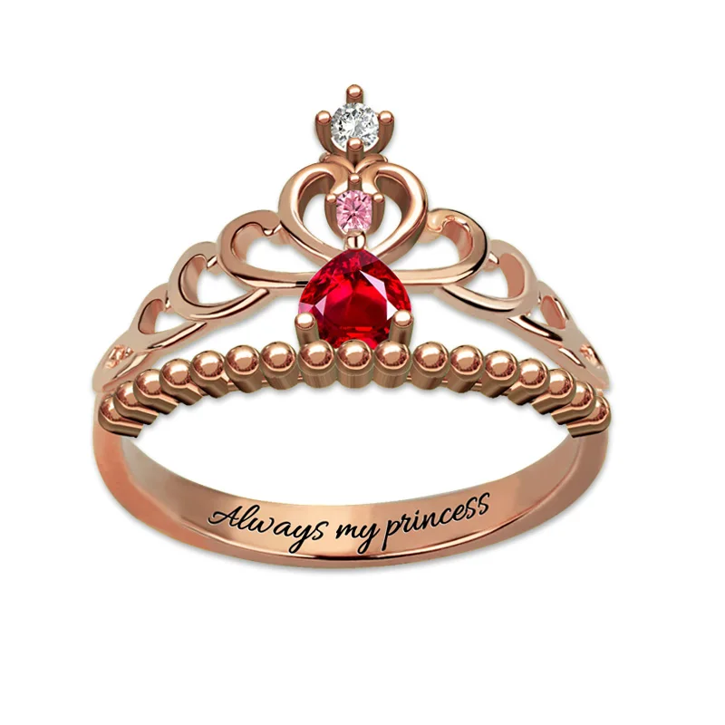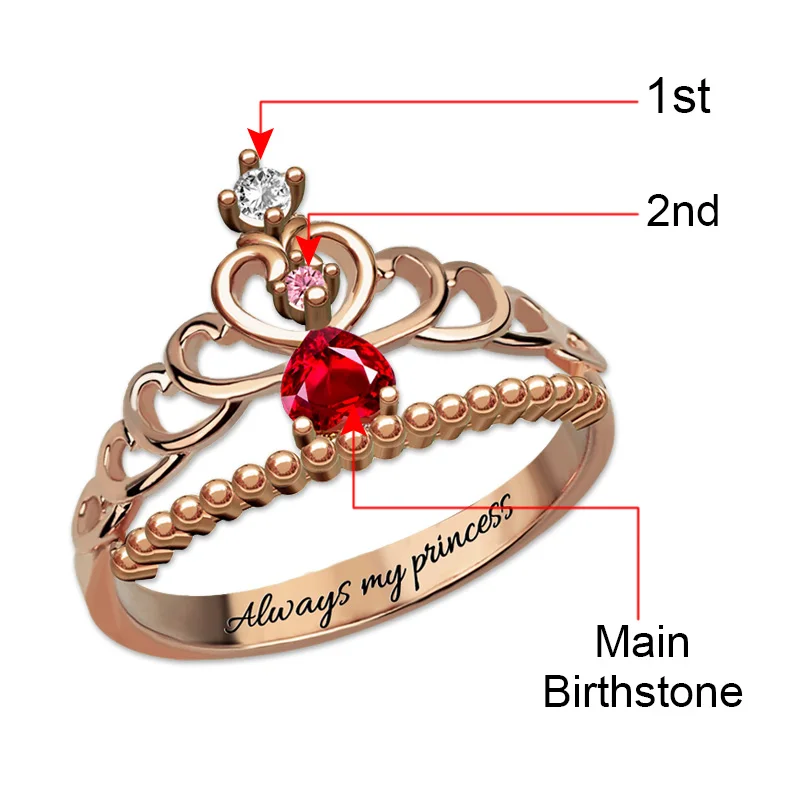 BEST QUALITY Wholesale Personalized Beautiful Tiara Birthstone Ring Rose Gold Color Fairytale Princess Tiara Cro