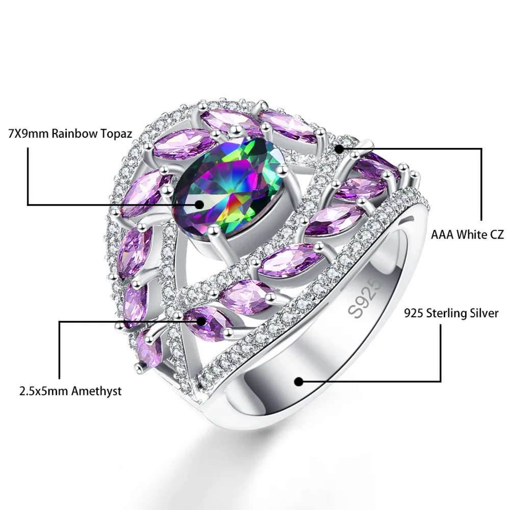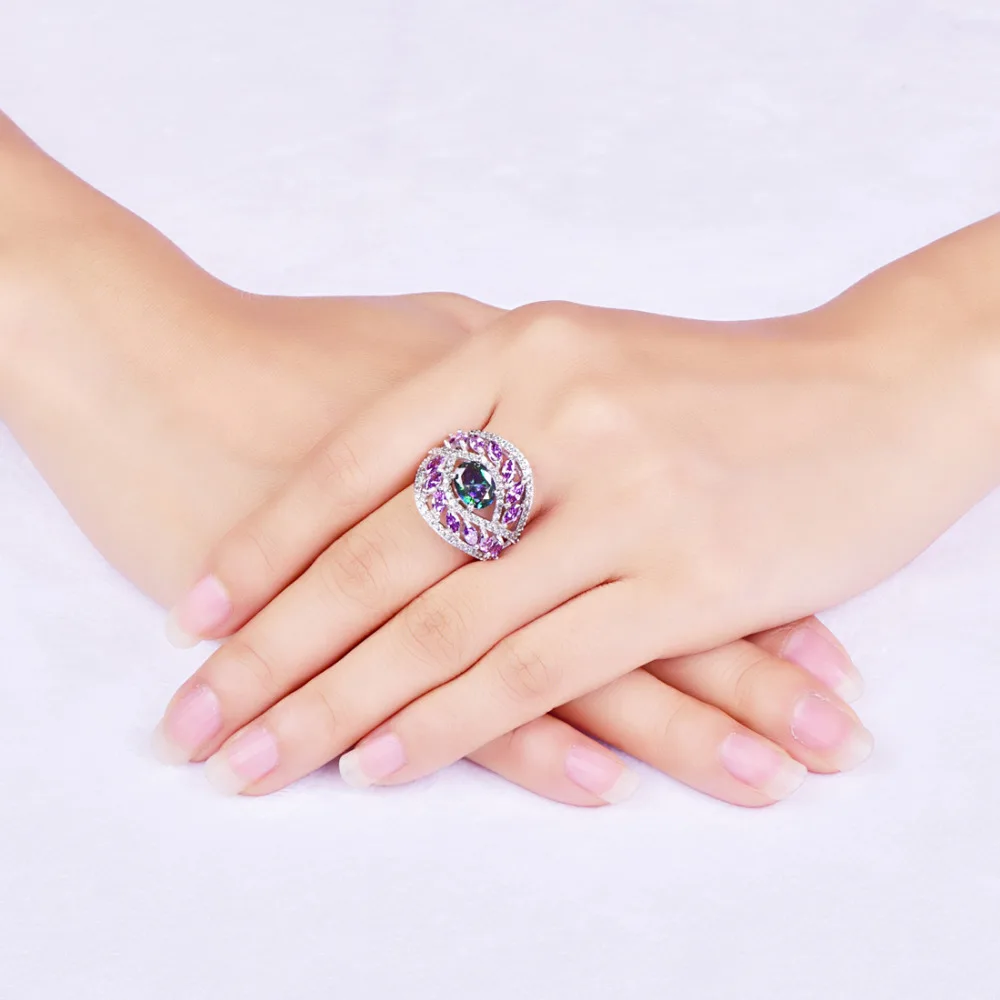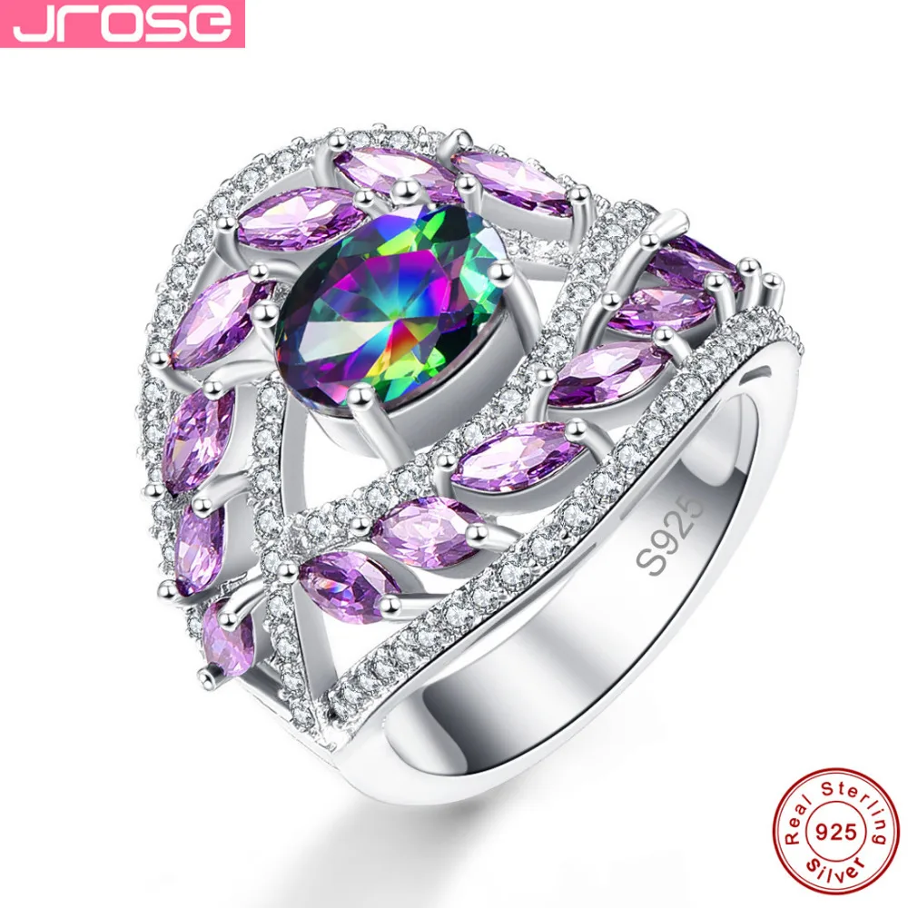 In hot selling Jrose's real 925 sterling silver rings seven color luxury jewelry engagement wedding