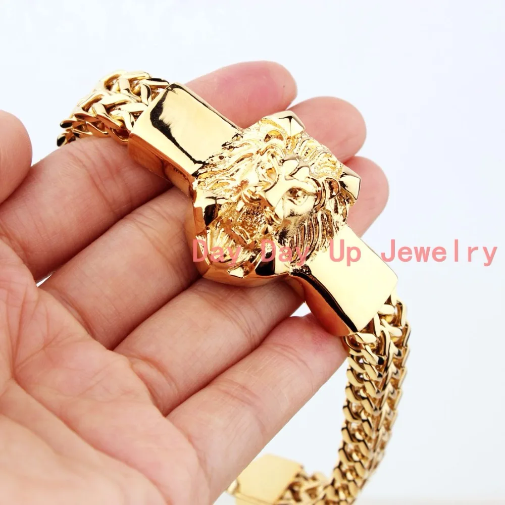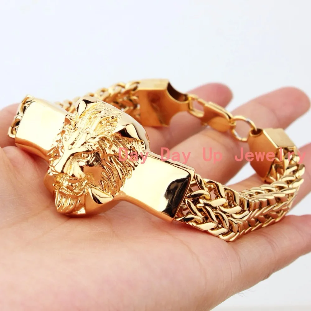 HIGH QUALITY 8.66" 15mm 79g High Quality mens Punk Bracelet 316L Stainless Steel Gold Lion Biker Jewelry Men's B