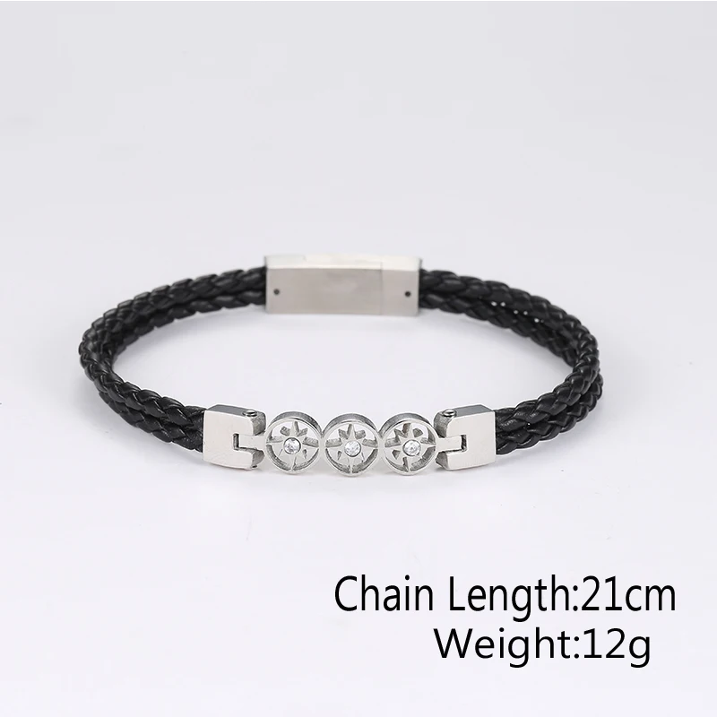 Gift charm black leather silver bracelet men in jewelry stainless steel friends dropshipping Bracel