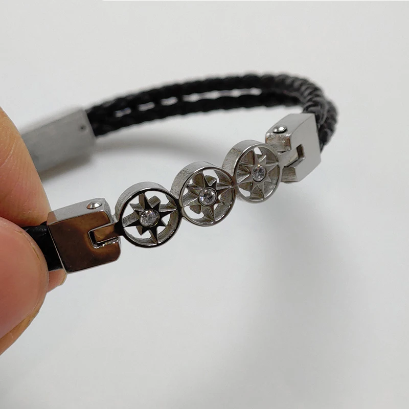 Review Top Gift charm black leather silver bracelet men in jewelry stainless steel friends dropshipping Bracel