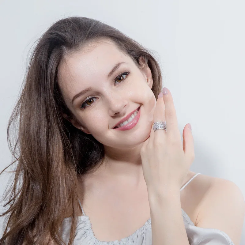 HOT SALE New Fashion Jewelry CZ Ring Micro Crystal Set Beautiful Women's Ring Environmental Protection Coppe