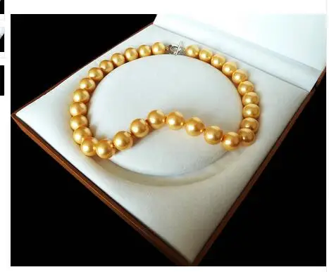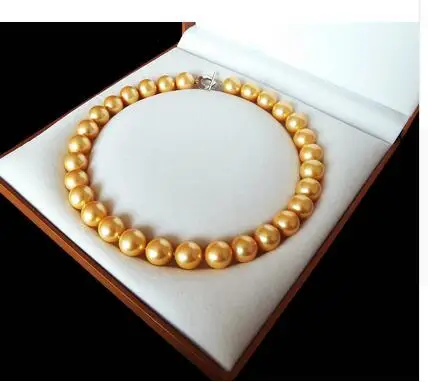 HIGH QUALITY 14MM Big Rare Huge Genuine South Sea Golden Shell Pearl Necklace Heart Clasp Women Gift word 925 si