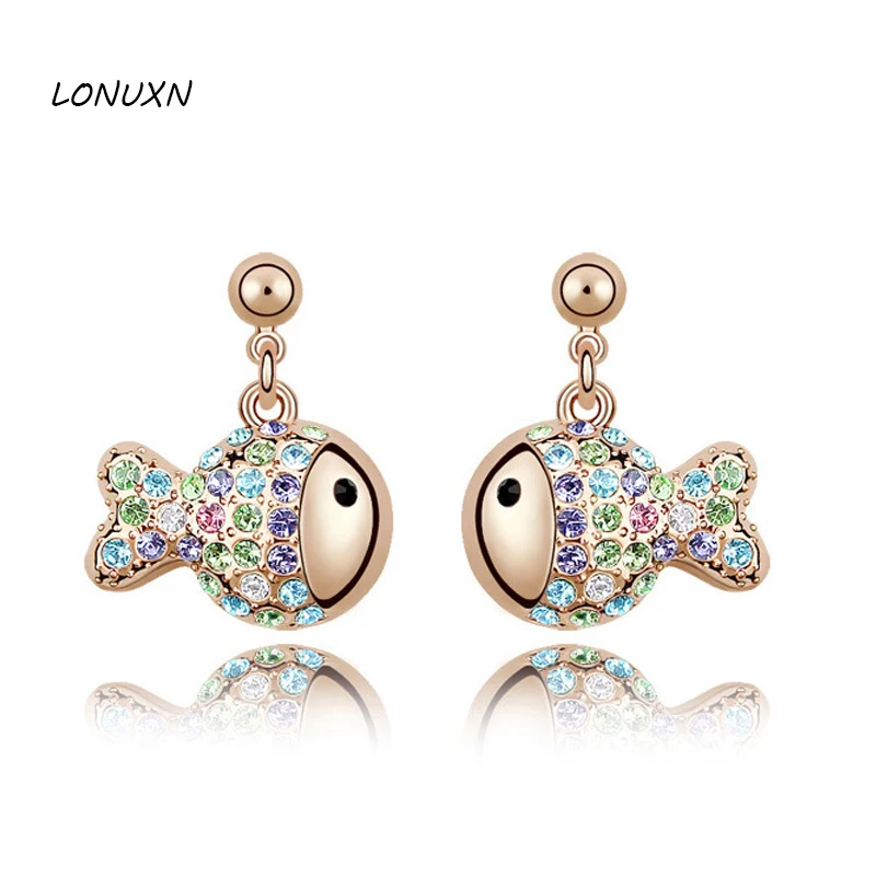 ORIGINAL 2*1.6cm a pairs fashion Austria female fish crystal earrings Austria cartoon Korean Fashion Jewelry