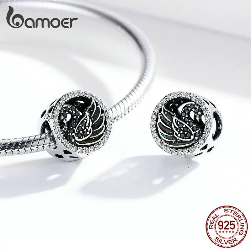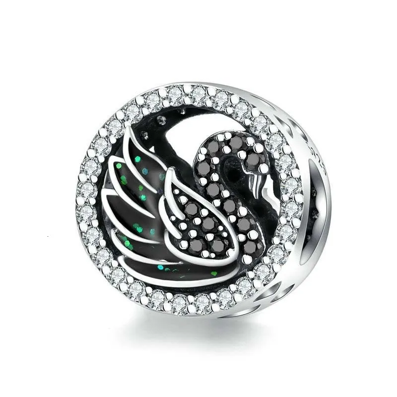 ORIGINAL Black Swan Round Beads for Women Jewelry Making Silver 925 Original Charm fit Bracelet & Bangle Des