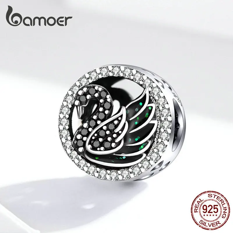 Black Swan Round Beads for Women Jewelry Making Silver 925 Original Charm fit Bracelet & Bangle Des