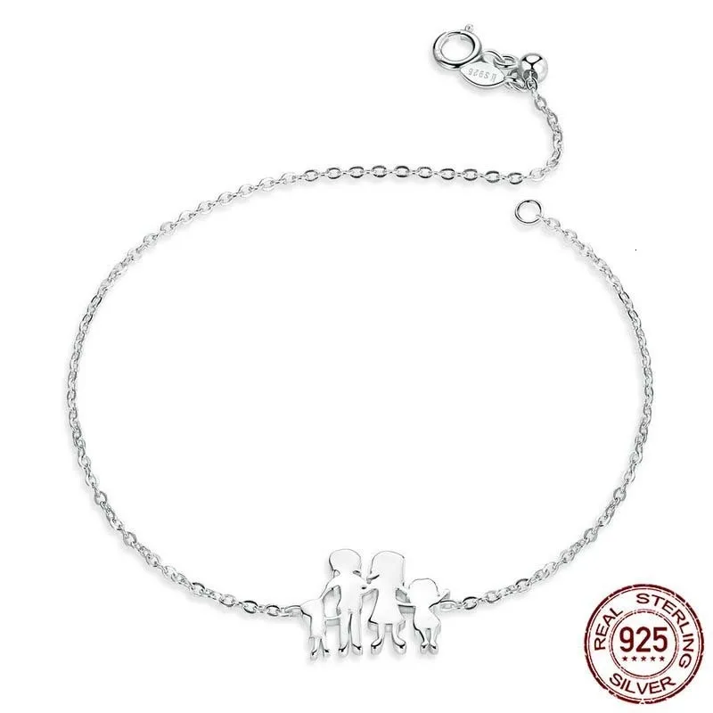 Silver 925 Jewelry Love Four Family Chain Bracelet for Women 925 Sterling Silver Fine Jewelry Festi