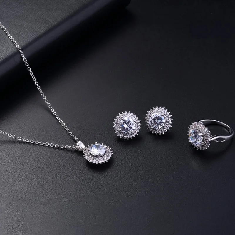 3pcs Fashion Trendy Lady's Jewelry Sets Copper Zircon Jewelry Necklace+ Earrings+Ring #233