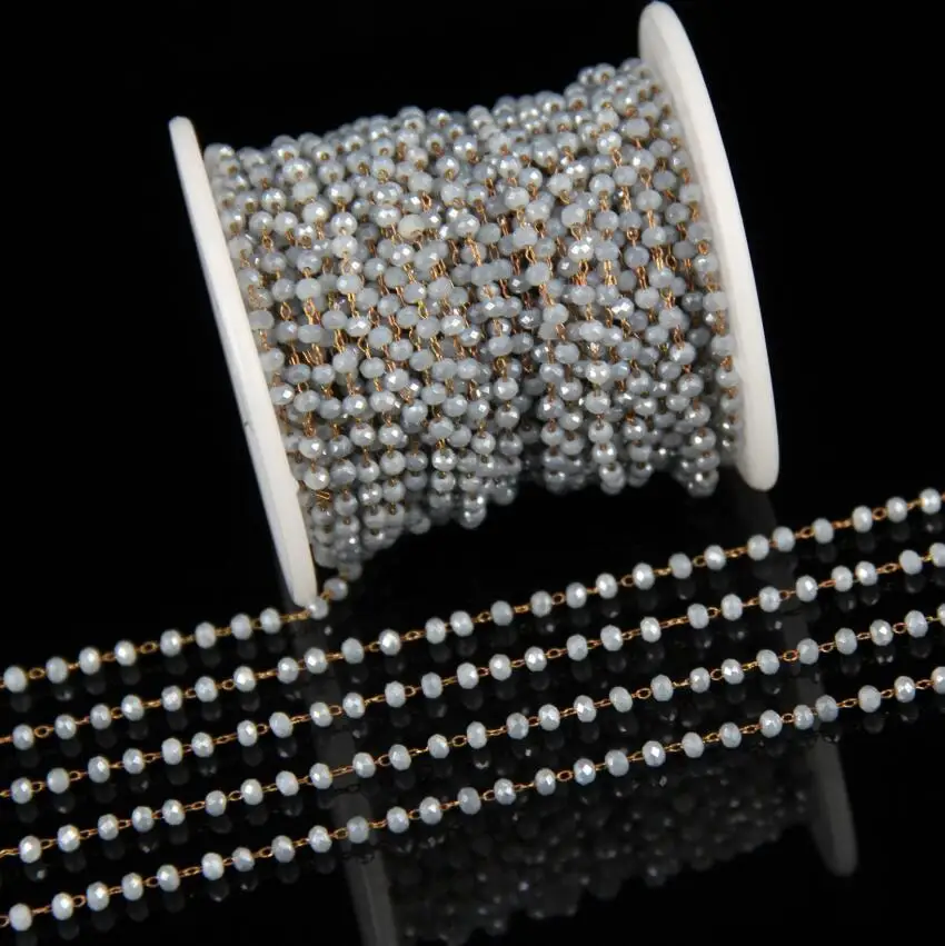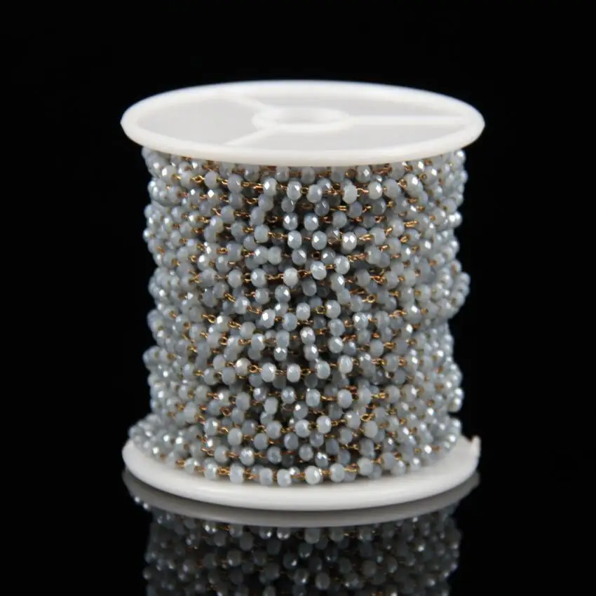 2xs3mm Wholesale Tiny Glass Beads Chains for NecklaceGrey Blue AB Titanium Glass Faceted Rondelle P