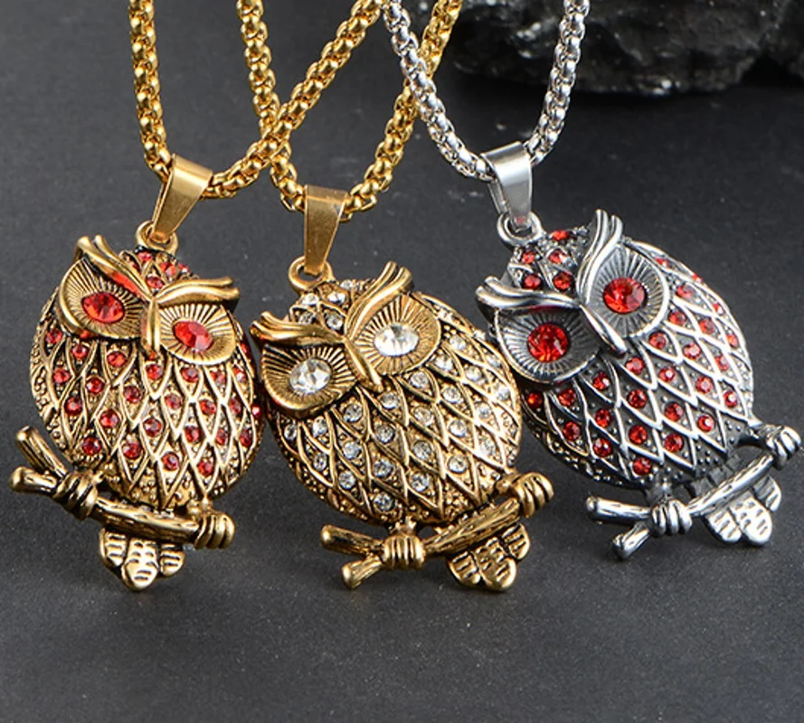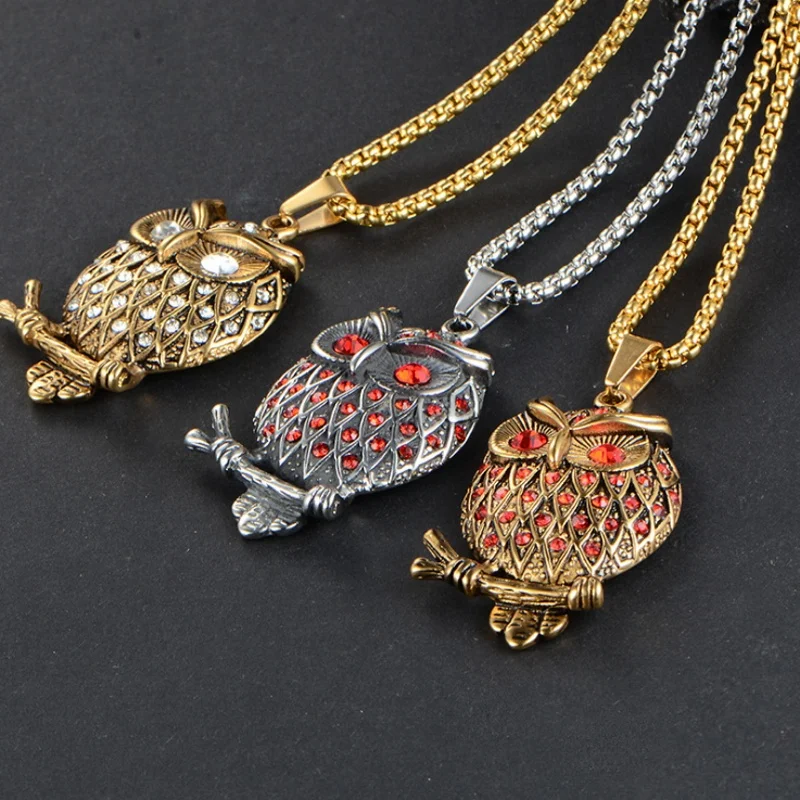 REVIEW TOP SELLER 3 colors Fashion jewelry Europe and America Fashion Man&woman Stainless Steel Owl Pendant Necklace#