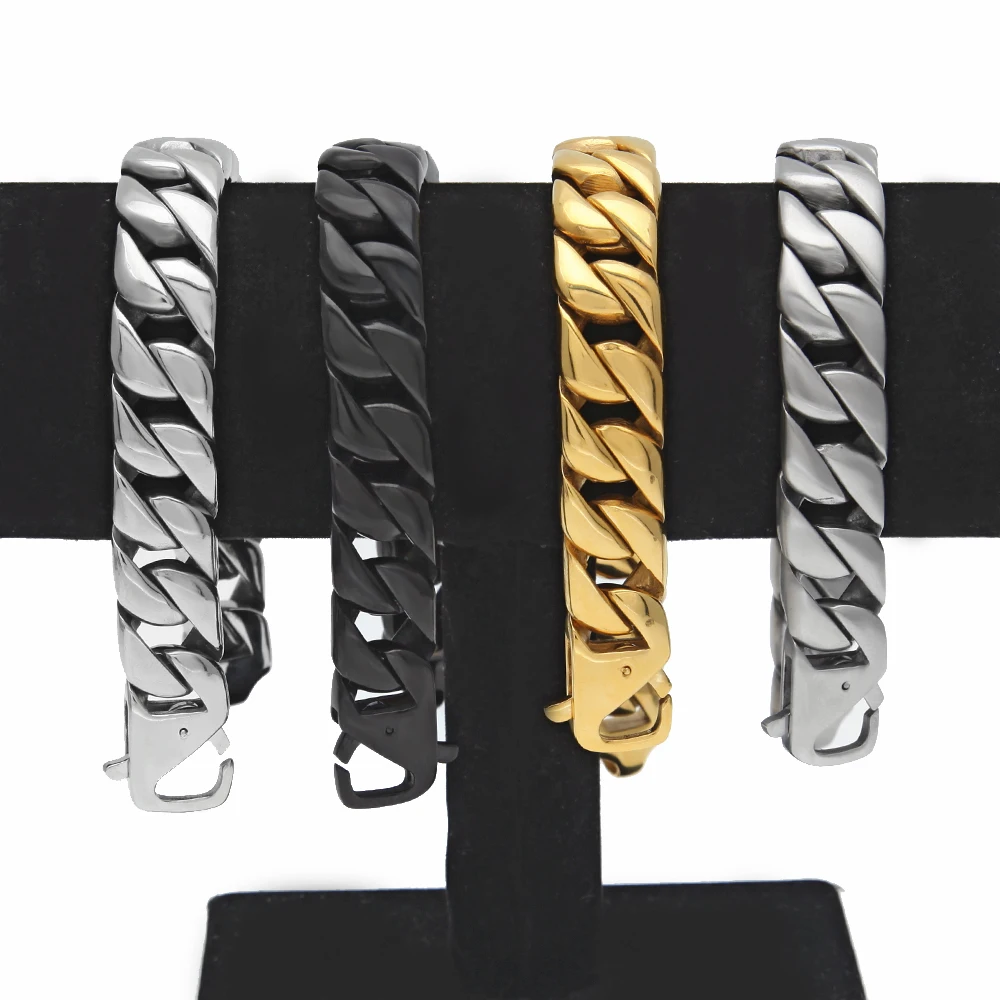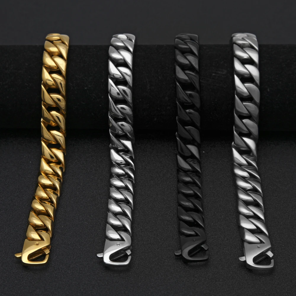 TBTK Four Colors Thick Cuban Chain Link Bracelet Black/Gold Simple Style Miamia Chain Wrist Jewelry