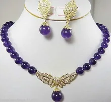 HIGH QUALITY Jewelry 8mm Purple gem Pendants Necklace Earring Quartz Fine Plated Bridal wide watch wings queen