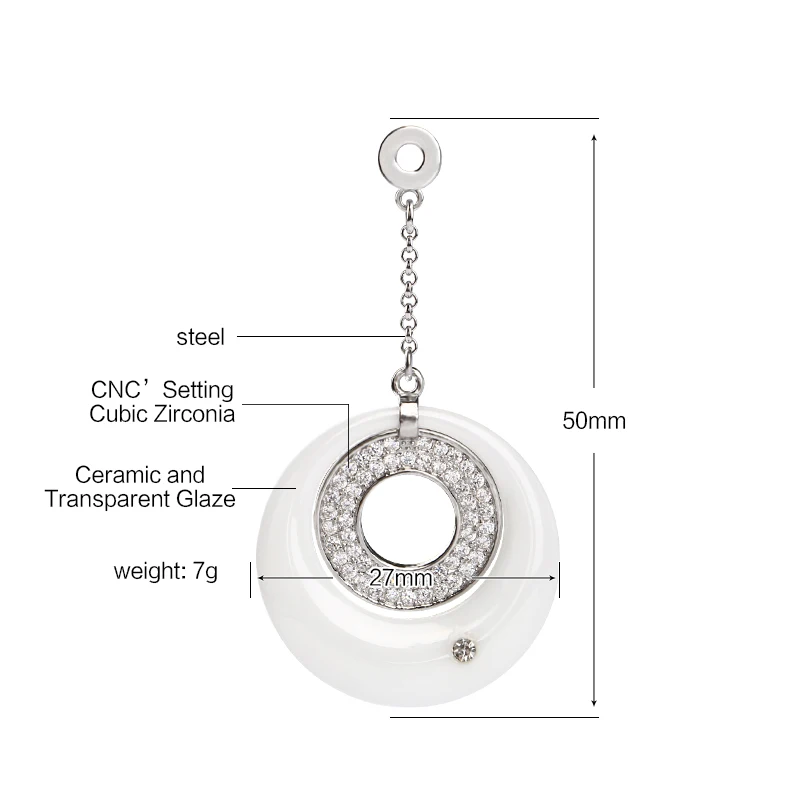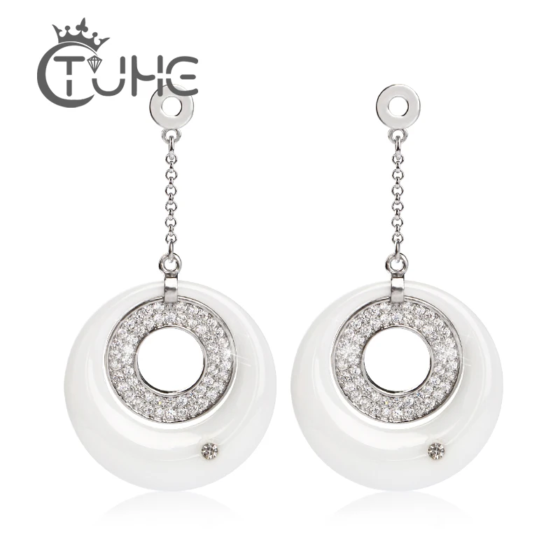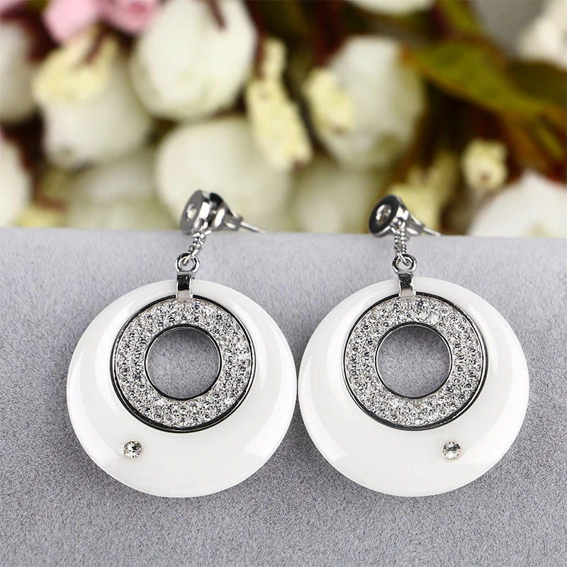 TOP Temperament Long Pendant Earring For Women Dress Luxury Australian Crystal Ceramic Circle Necklace
